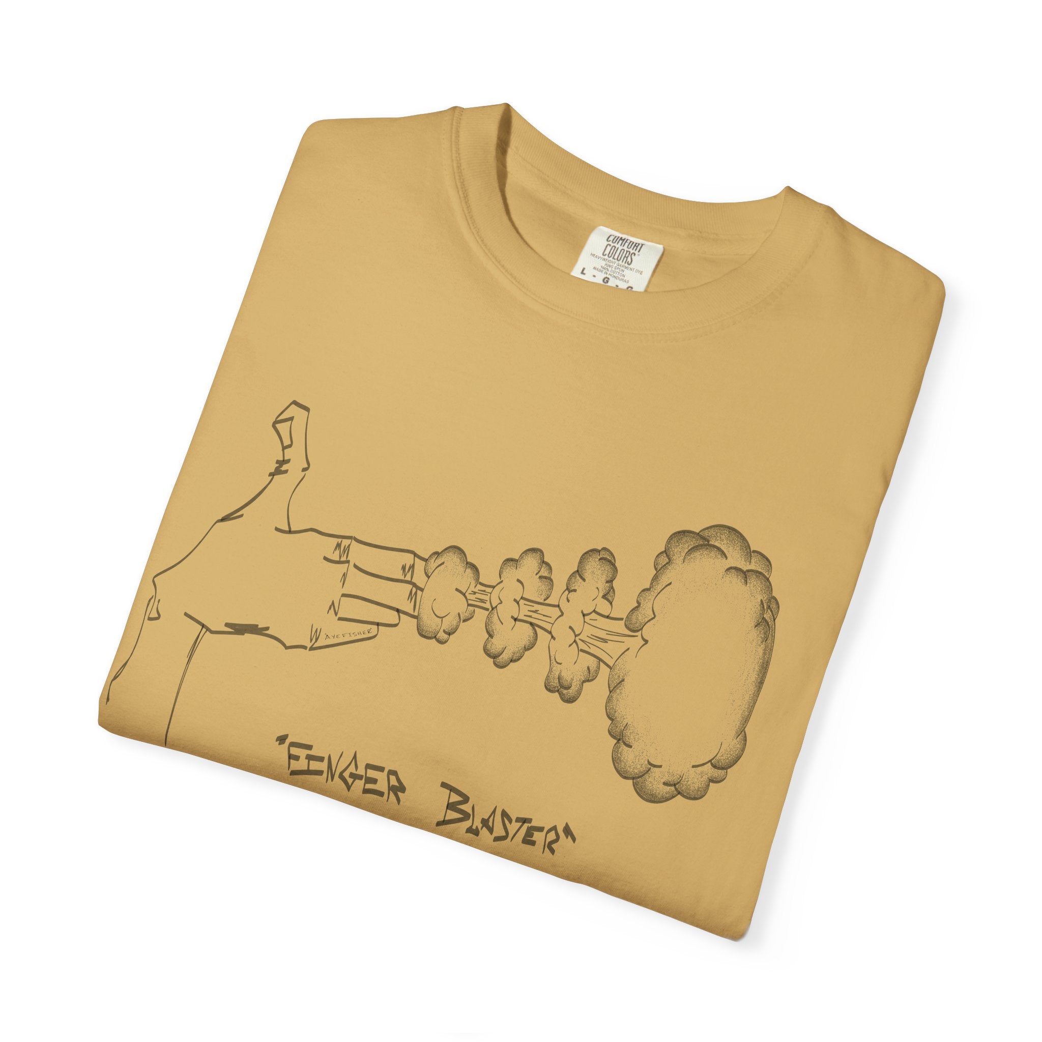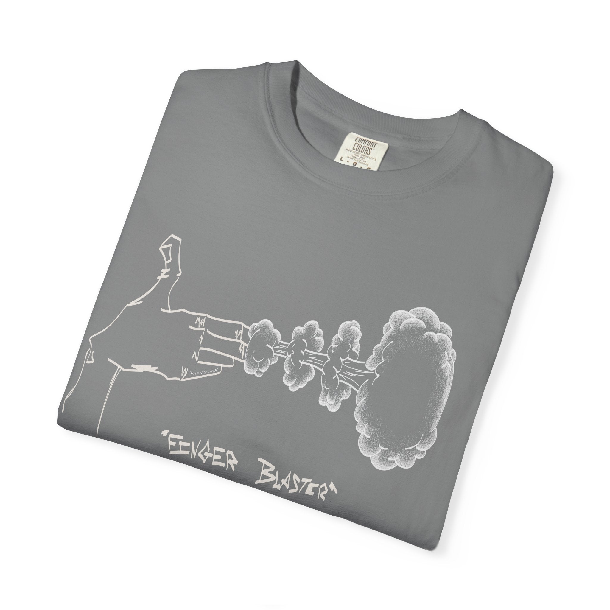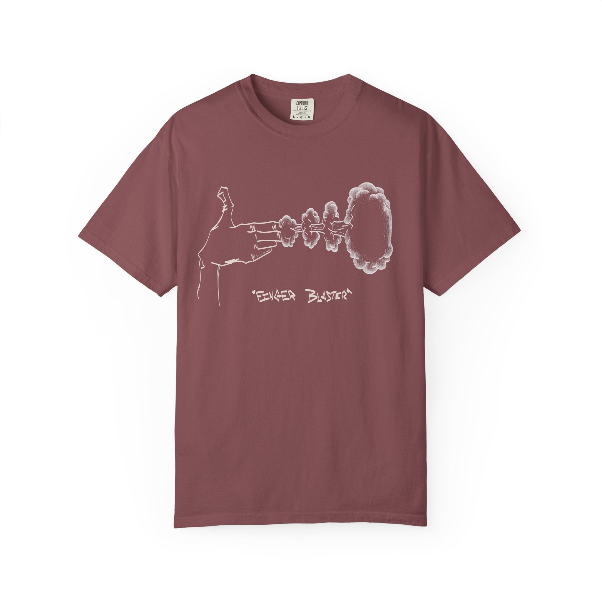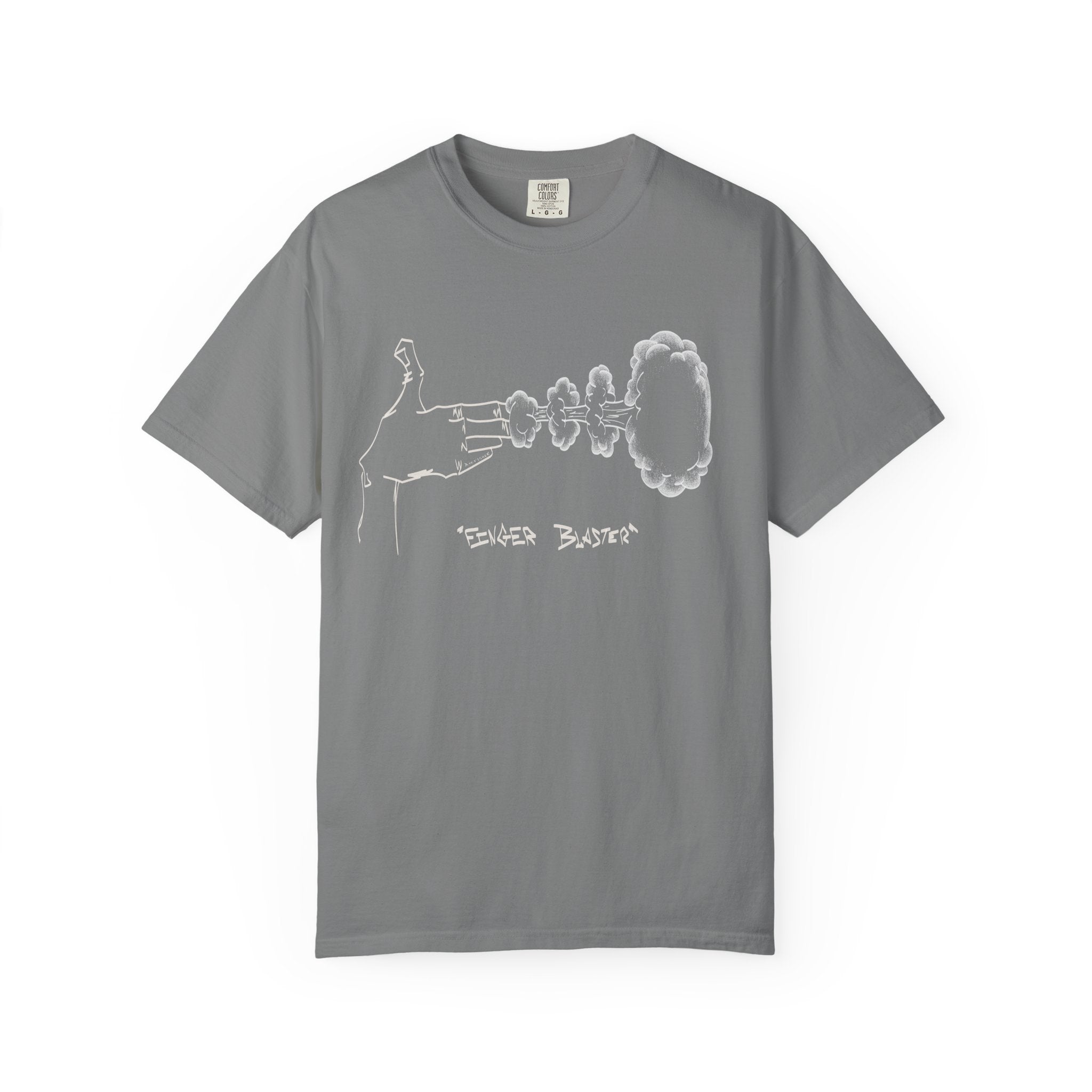 This tee features two fingers caught mid-blast—a playful, subtle nod with a bit of attitude. Made from soft, heavyweight Comfort Colors fabric, it has a relaxed, broken-in feel that’s comfortable all day. Perfect for anyone who likes to keep things fun and a little unexpected.